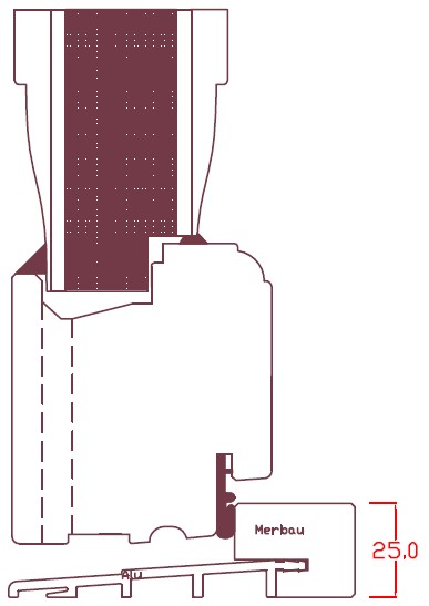 25 mm HC terskel i hardtre og aluminium (standard).56 mm hardtre terskel. Blir levert utan foringsnot om det ikkje er spesifisert at det skal vere med not (som på teikning).