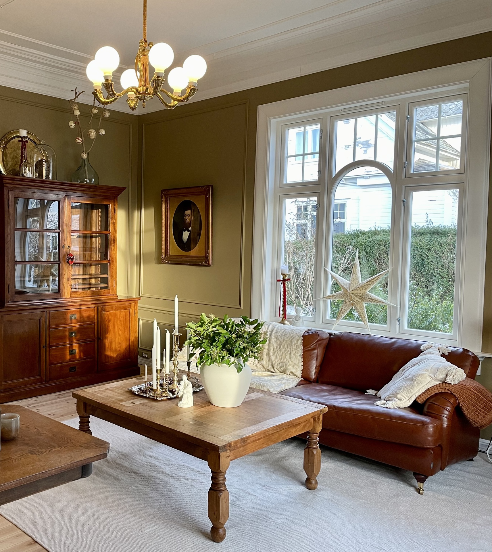 - Blyglassvinduer med motiv fra sagn eller natur.